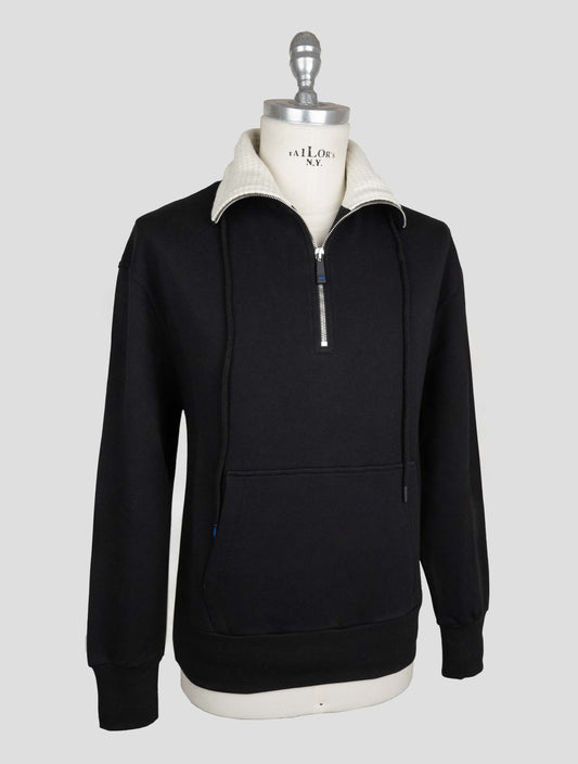 Kiton KNT Black Cotton Half-Zip Sweater - Italian Handmade