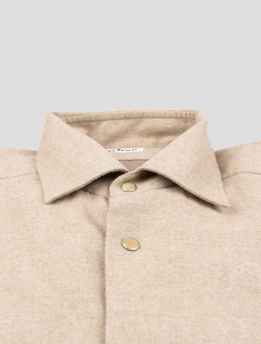 Kiton Beige Cotton Dress Shirt - Handmade Italian Regular Fit