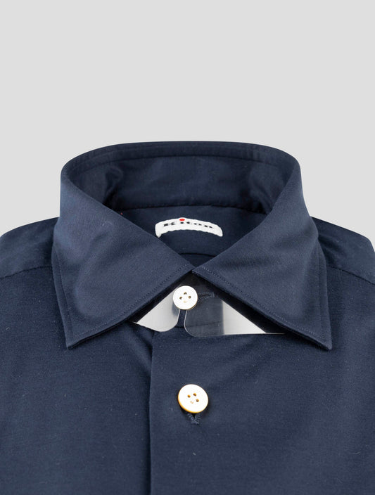 Kiton Blue Cotton Shirt - 100% Handmade Italian Dress Shirt