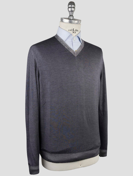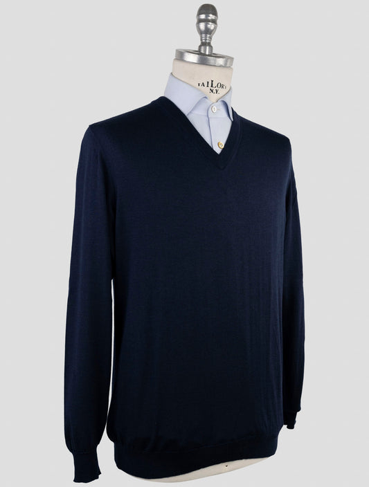 Kiton Luxury Blue Cashmere Silk V-Neck Sweater Men's Italian