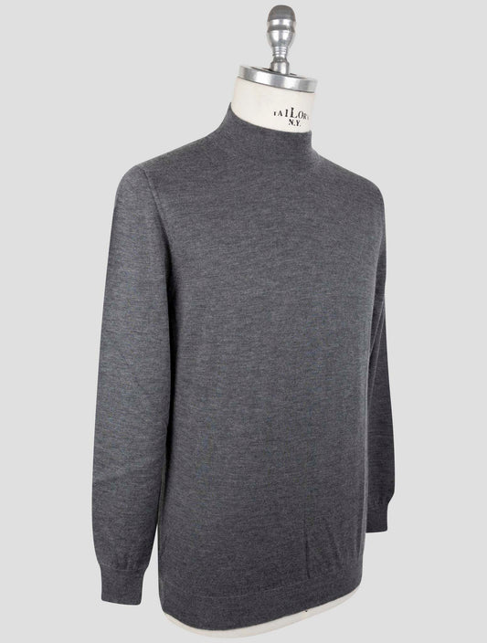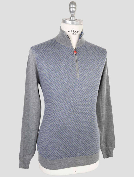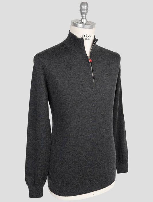Kiton Premium Gray Cashmere Silk Half-Zip Sweater Italian Made