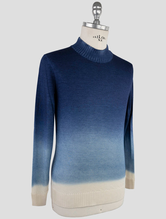 Kiton Cashmere Silk Turtleneck Sweater Blue White Handmade Italian