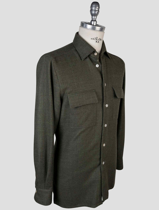 Kiton Green Textured Cashmere Silk Shirt - Italian Luxury