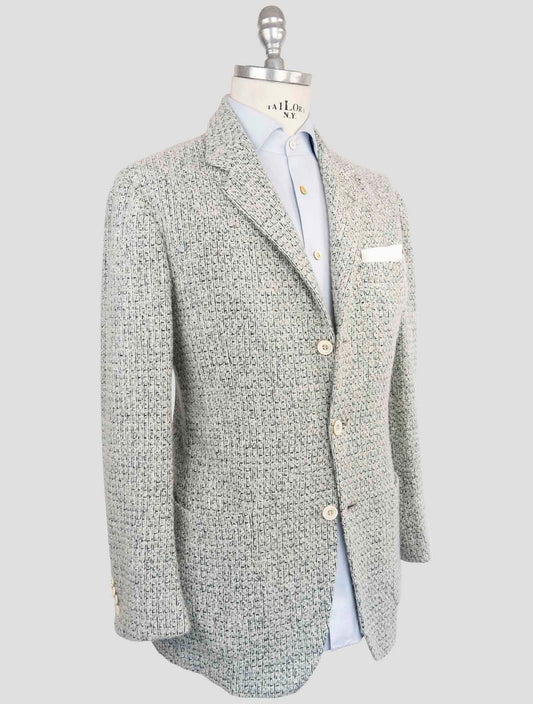 Kiton Luxury Cashmere Silk Blazer White Green Italian Handmade