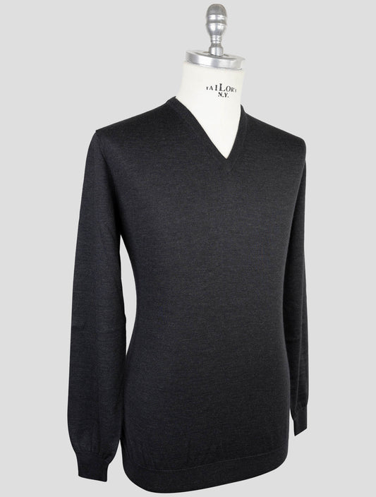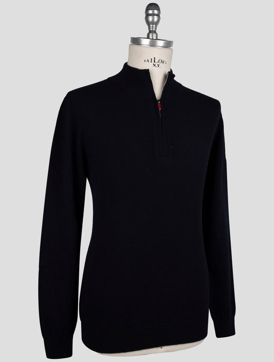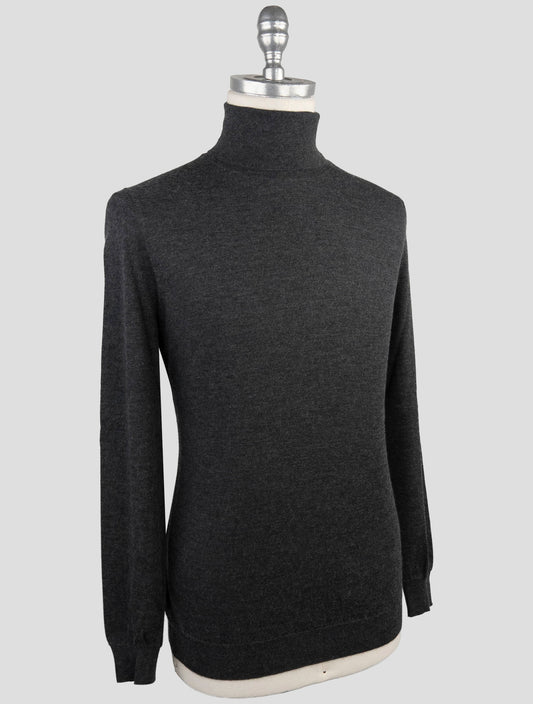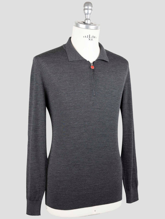 Kiton Premium Wool Half Zip Polo Sweater Dark Gray Italian