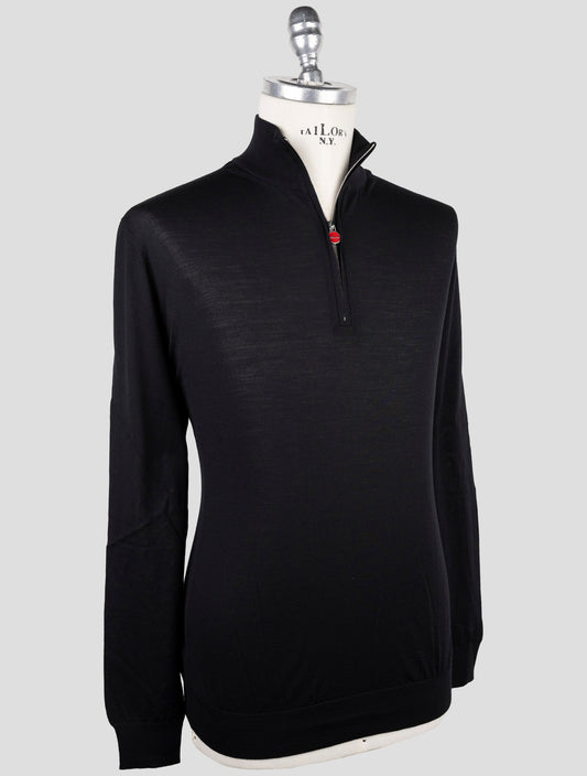 Kiton Luxurious Black Cashmere Half-Zip Sweater - Made in Italy