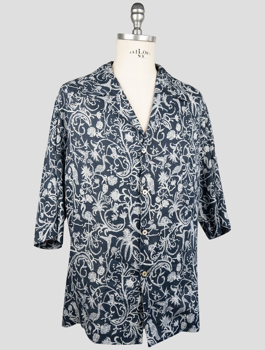 قميص كيتون أزرق من صوف العذراء والحرير والكتان