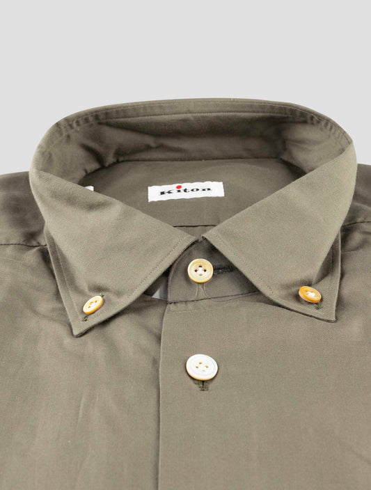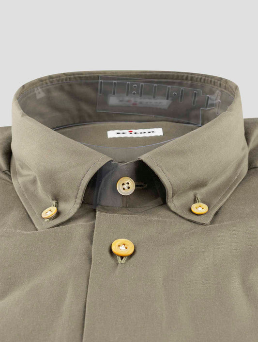 Kiton Green Cotton Dress Shirt Regular Fit Handmade Italian