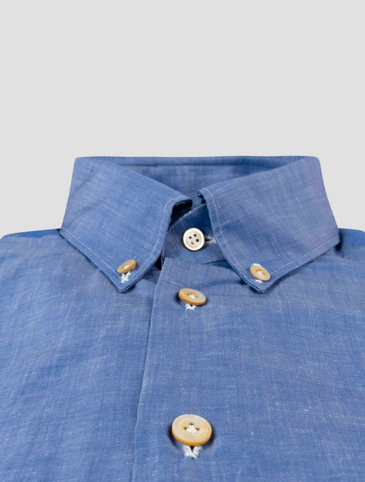 Kiton Blue Cotton Linen Shirt - Handmade Italian Regular Fit