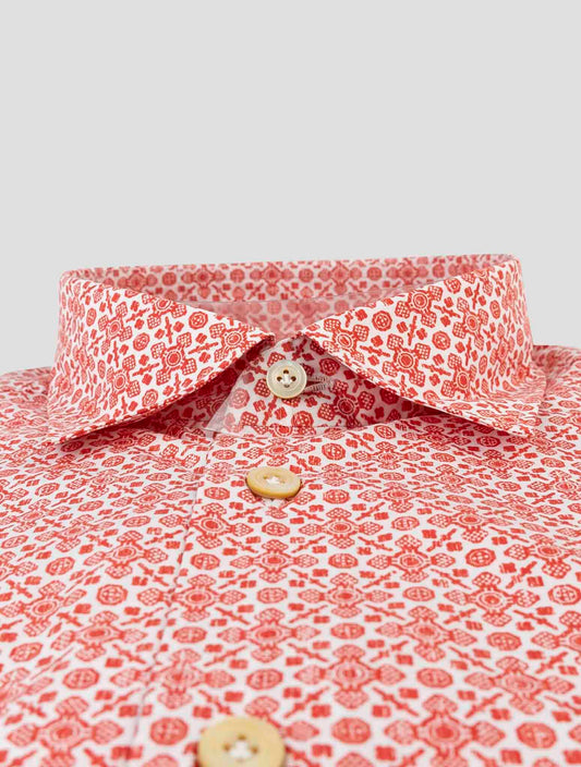 Kiton Red White Geometric Cotton Shirt - Italian Handmade Premium