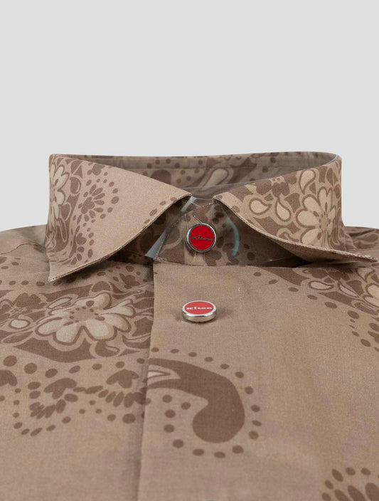 Kiton Brown Paisley Cotton Shirt - Handmade Italian Regular Fit