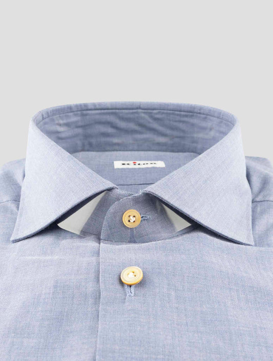 Kiton Handmade Linen Cotton Shirt Light Blue Italian Premium