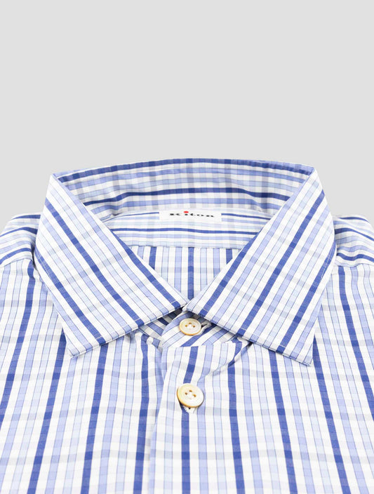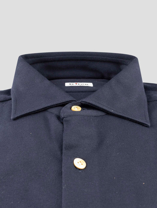 Kiton Blue Cotton Dress Shirt Men's Handmade Italian Regular Fit