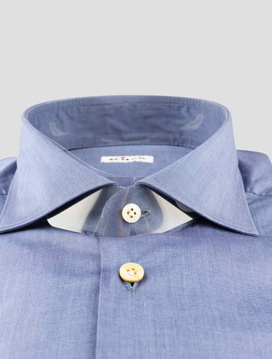 Kiton Premium Blue Cotton Dress Shirt - Handmade Italian Regular