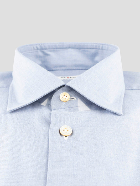Kiton Handmade Premium Cotton Dress Shirt Light Blue Italian