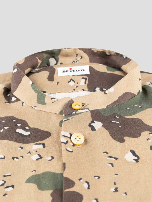 Kiton Premium Linen Korean Collar Shirt - Green Brown Camouflage