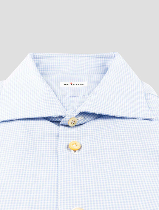 Kiton Light Blue Cotton Dress Shirt - Handmade Italian Regular Fit