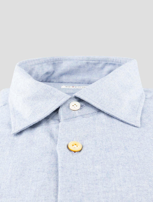 Kiton Premium Cotton Dress Shirt Blue Handmade Italian Regular