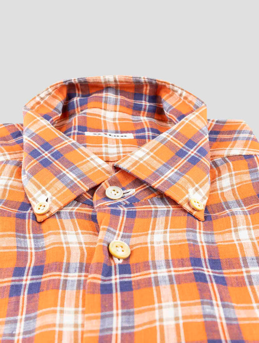 Kiton Handmade Linen Shirt - Multicolor Plaid Italian Premium