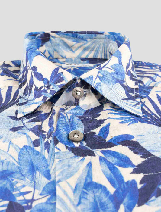 Kiton Blue Linen Floral Shirt - Handmade Italian Men's Regular Fit