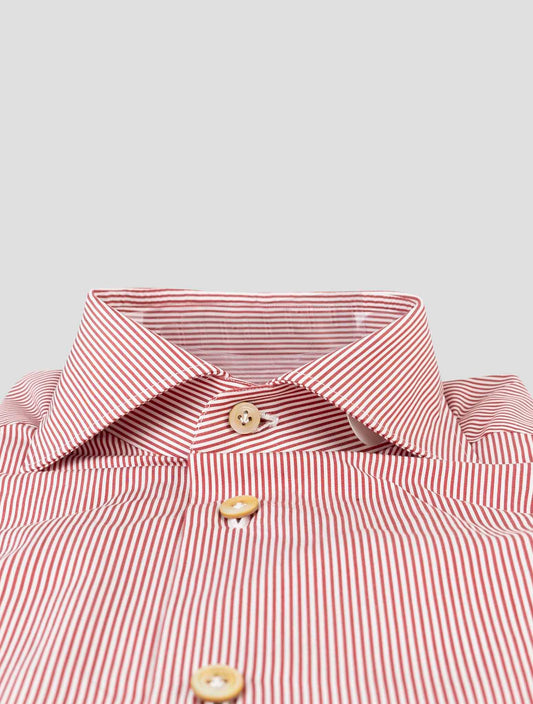 Kiton Handmade Red White Striped Cotton Shirt Italian Premium