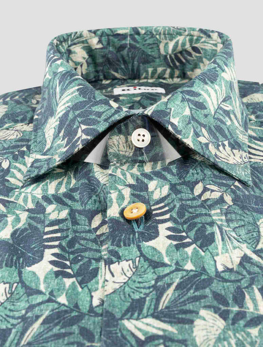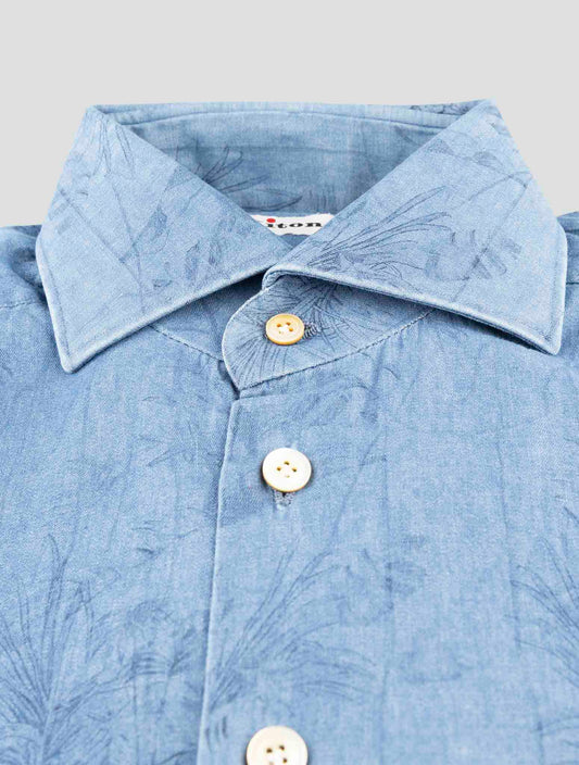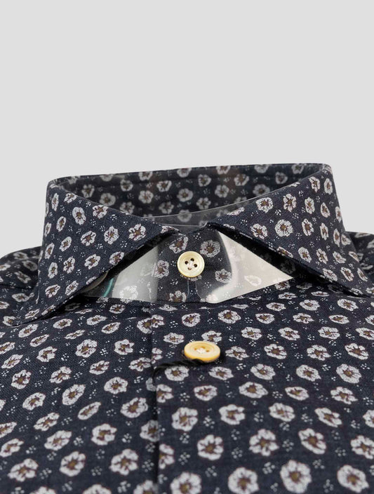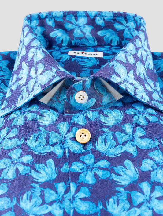 Kiton Premium Handmade Blue Linen Floral Shirt - Italian Regular Fit