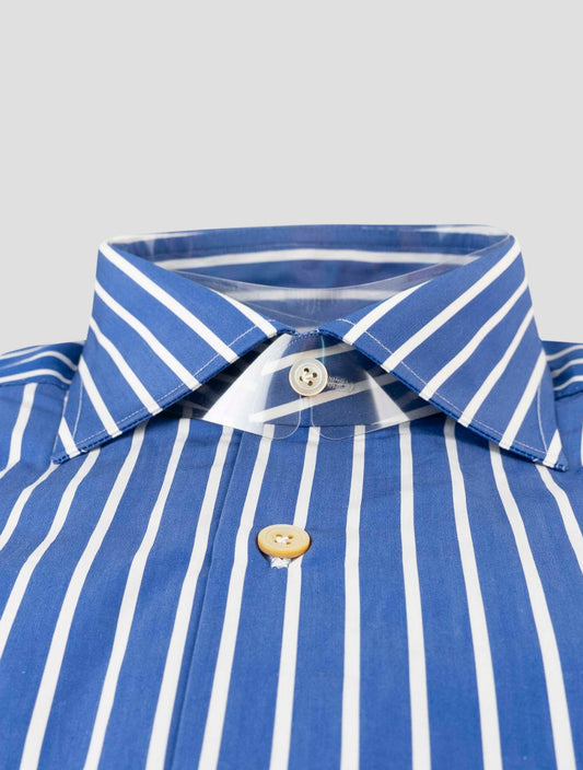 Kiton Handmade Blue Striped Cotton Dress Shirt - Italian Premium