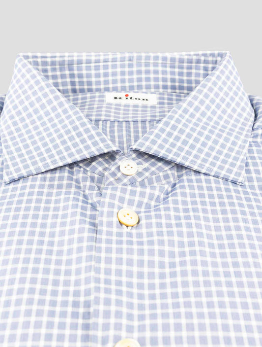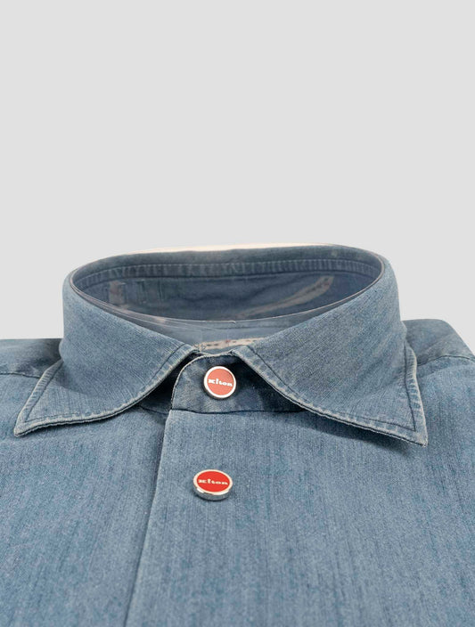 Kiton Premium Blue Cotton Dress Shirt - Italian Handmade Regular Fit