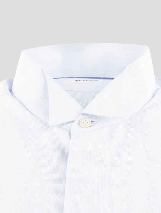 Kiton Handmade Cotton Shirt Light Blue Striped Italian Luxury Men