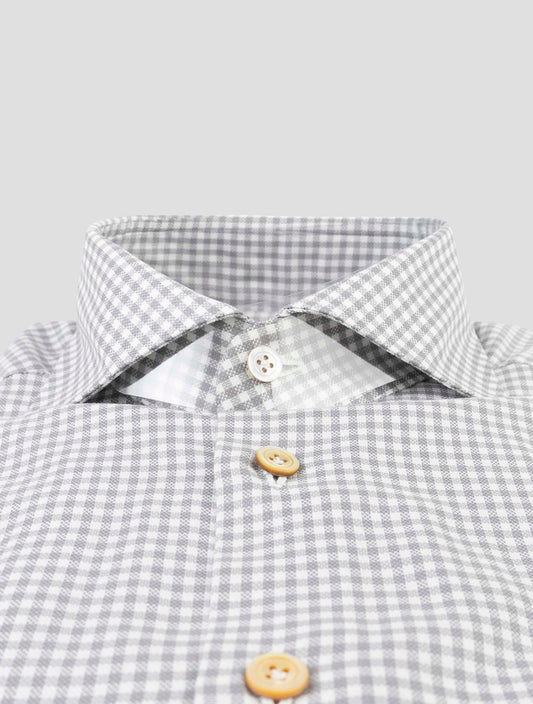 Kiton Gray Cotton Dress Shirt - Handmade Italian Geometric