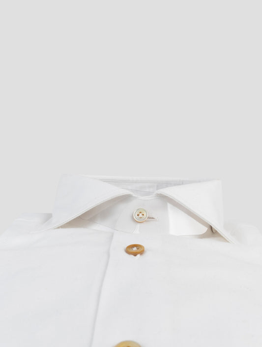 Kiton Handmade Cotton Linen Dress Shirt White Italian Luxury