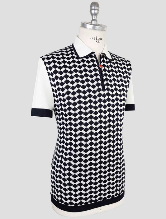 بولو كيتون نصف سحاب من الحرير والقطن الأزرق والأبيض