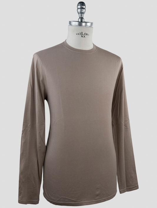 Kiton Taupe Baumwoll-Kaschmir Pullover mit Rundhalsausschnitt