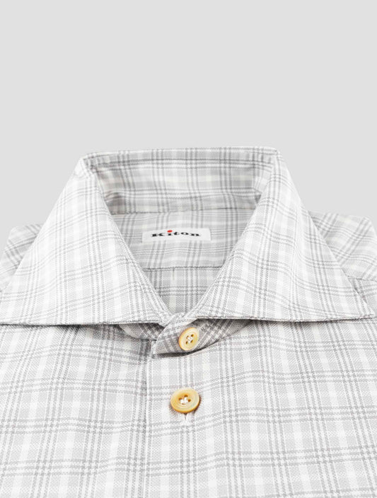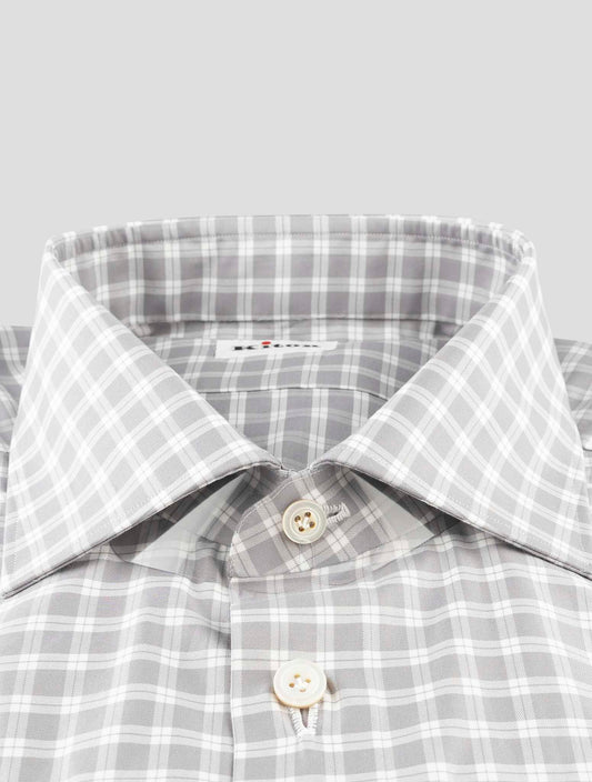 Kiton Gray Plaid Cotton Dress Shirt - Handmade Italian Regular Fit
