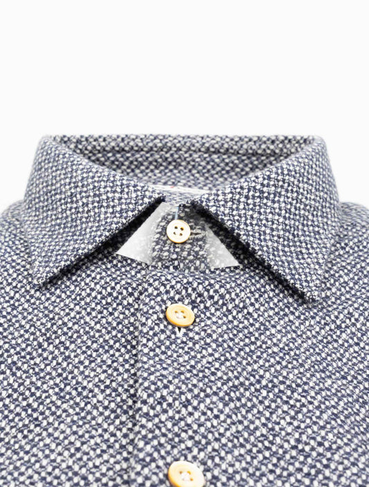 Kiton Blue White Cotton Shirt - Handmade Italian Geometric Pattern