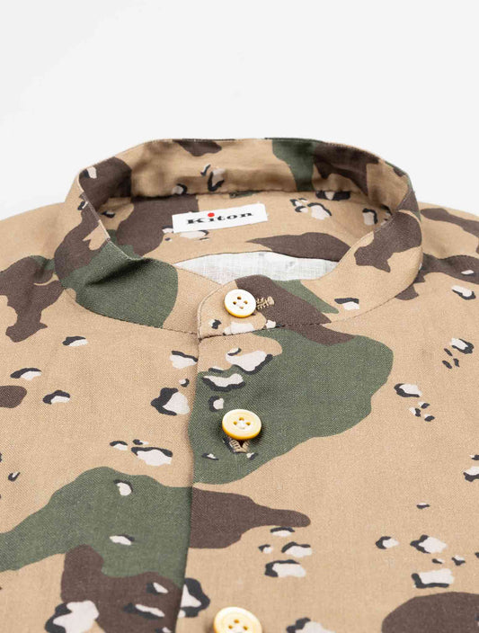 Kiton Green Brown Linen Korean Shirt - Italian Handmade Summer