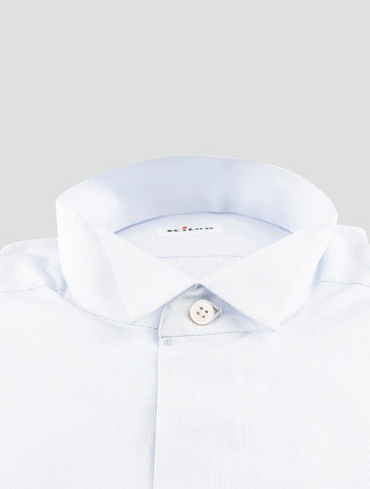Kiton Light Blue Striped Cotton Shirt - Handmade Italian Dress Shirt