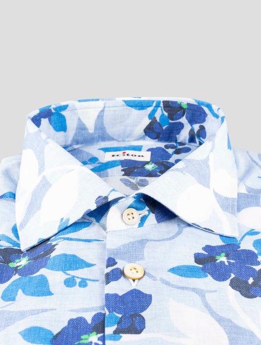 Kiton Blue Floral Cotton Shirt - Handmade Italian Dress Shirt