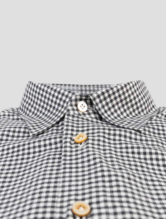 Kiton Gray Plaid Cotton Shirt - Handmade Italian Dress Shirt