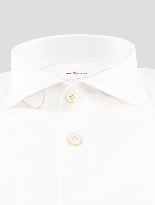 Kiton White Cotton Dress Shirt - Handmade Italian Regular Fit