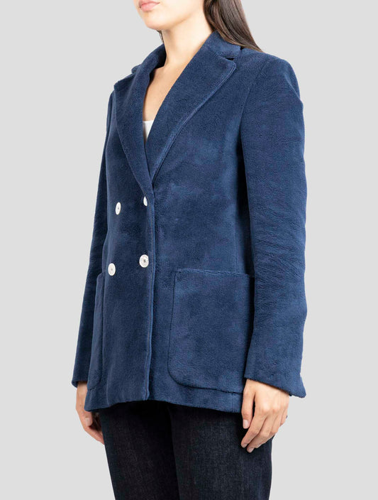 Kiton Blue Viscose Cotton Blazer - Italian Handmade Women's