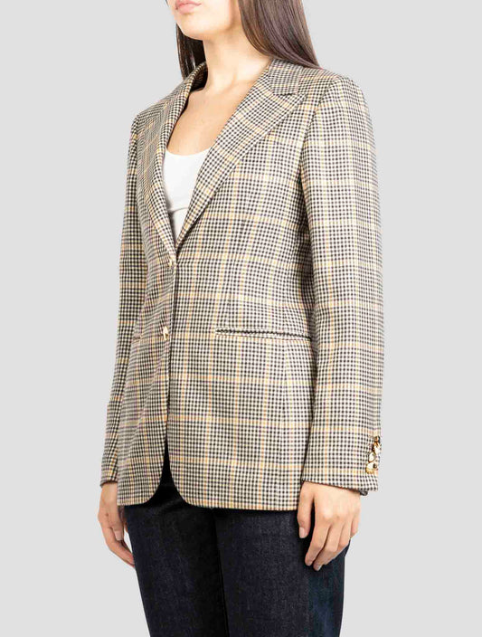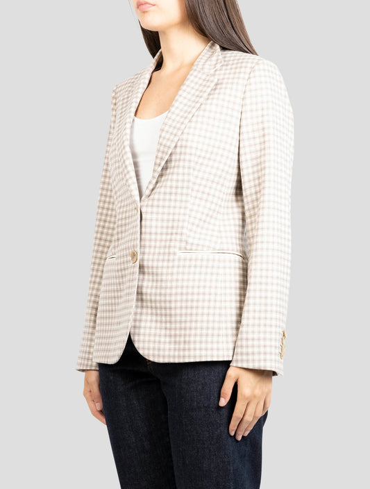 Kiton Premium Virgin Wool Blazer - Gray Brown Plaid Women's