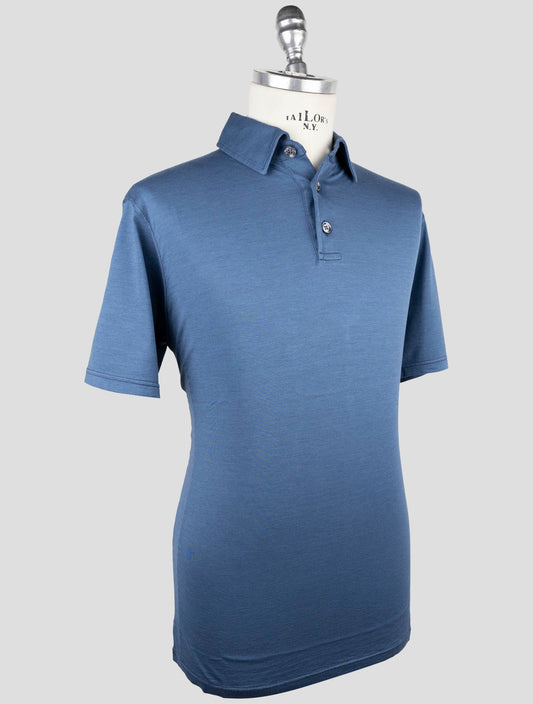 Kiton Blauer Seiden-Baumwoll-Polo
