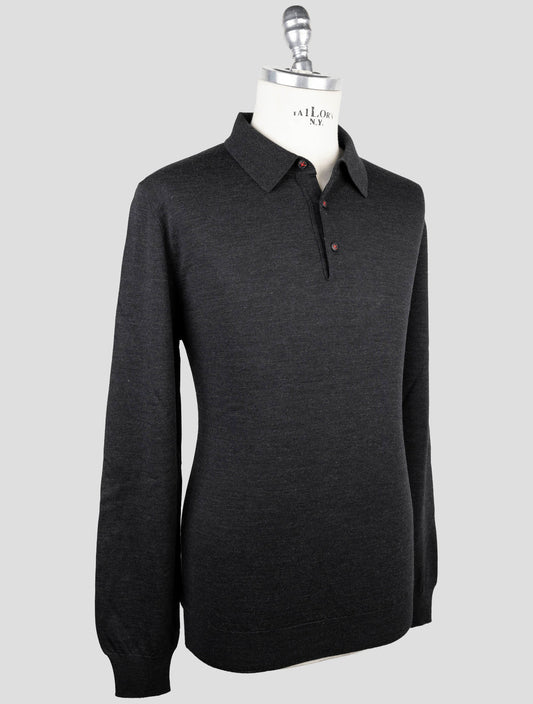 Kiton Dunkelgrauer Wollpullover Polo