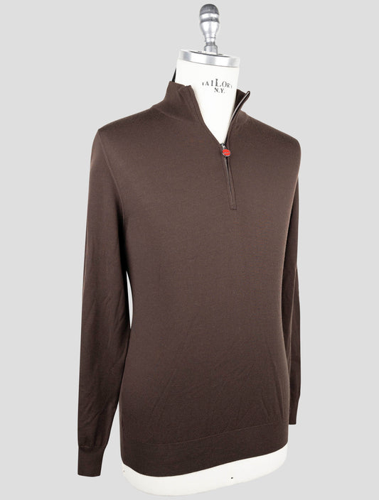 Kiton Brauner Wollpullover mit Halbzipper