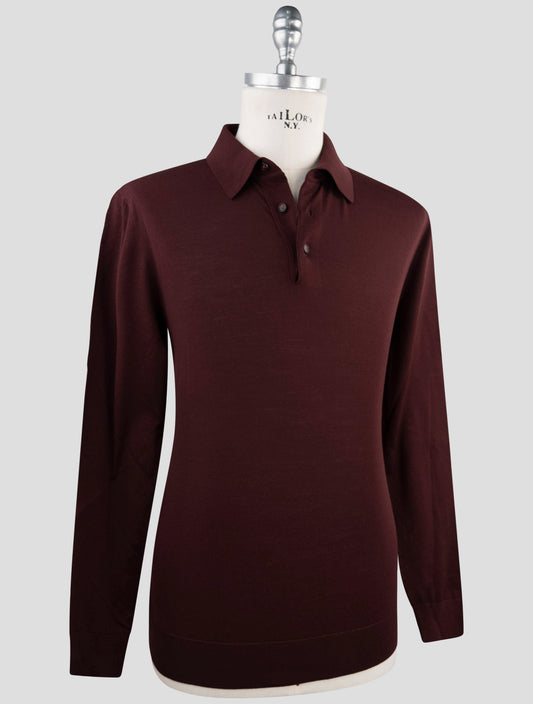 Kiton Burgunderfarbener Woll-Diamante Blau Polo Pullover