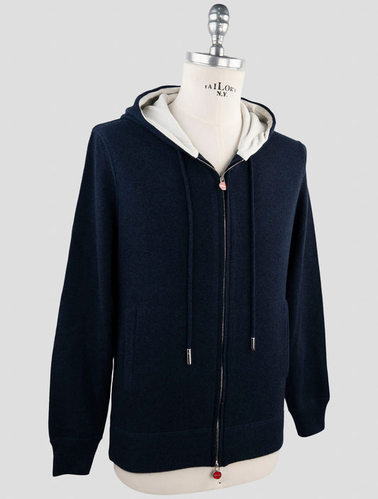 Kiton Blauer Cashmere Hoodie mit Reißverschluss