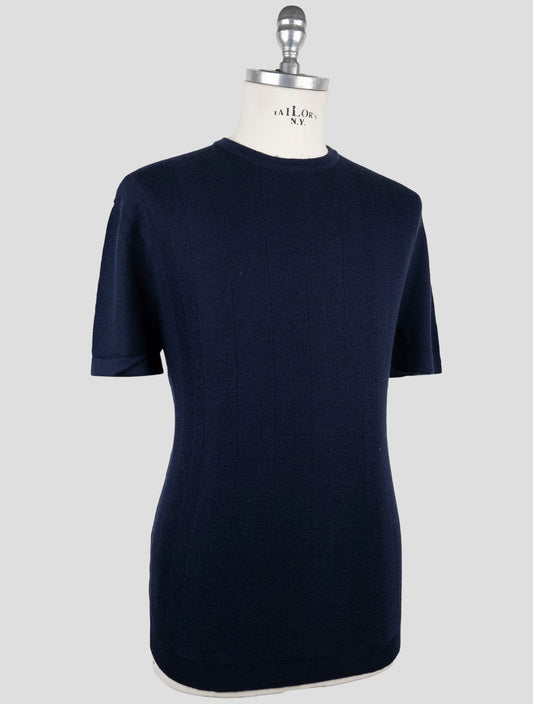 Kiton KNT Blue Virgin Wool Silk Luxury T-Shirt Made in Italy