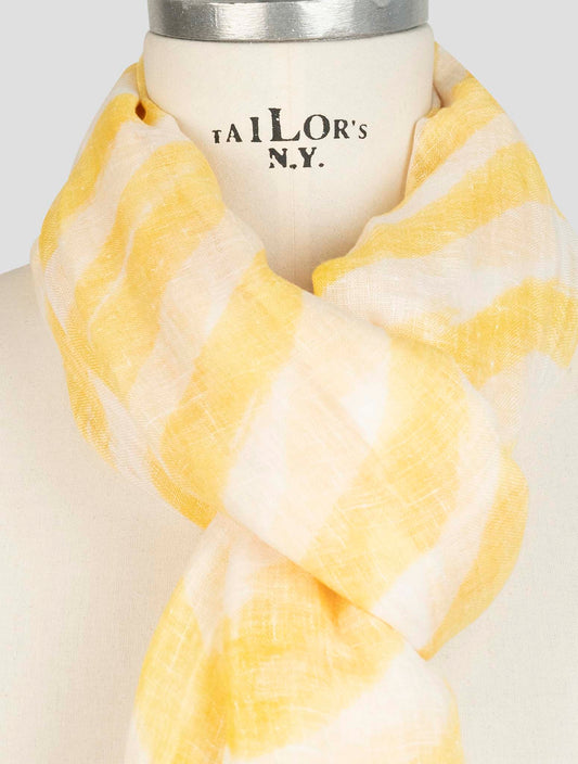 Kiton Yellow White Striped Linen Scarf - Handmade Italian