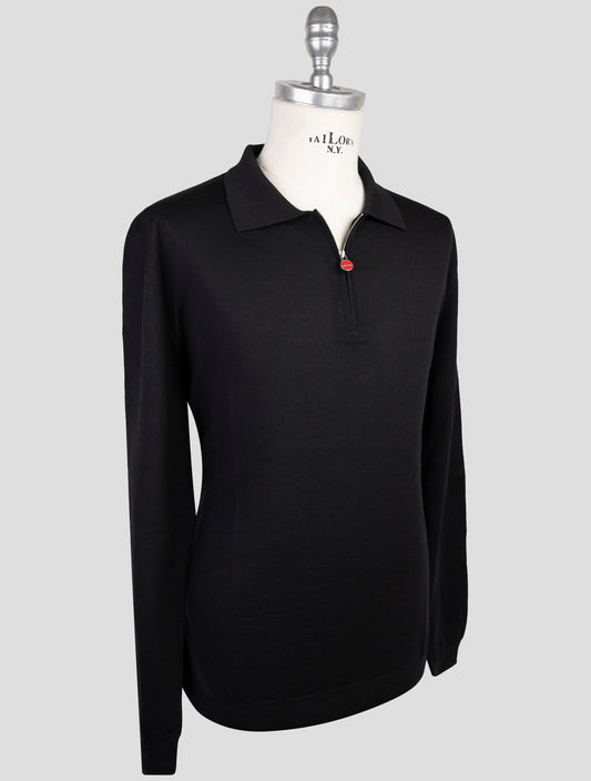 Kiton Black Wool Polo Sweater - Italian Handmade Winter Knit